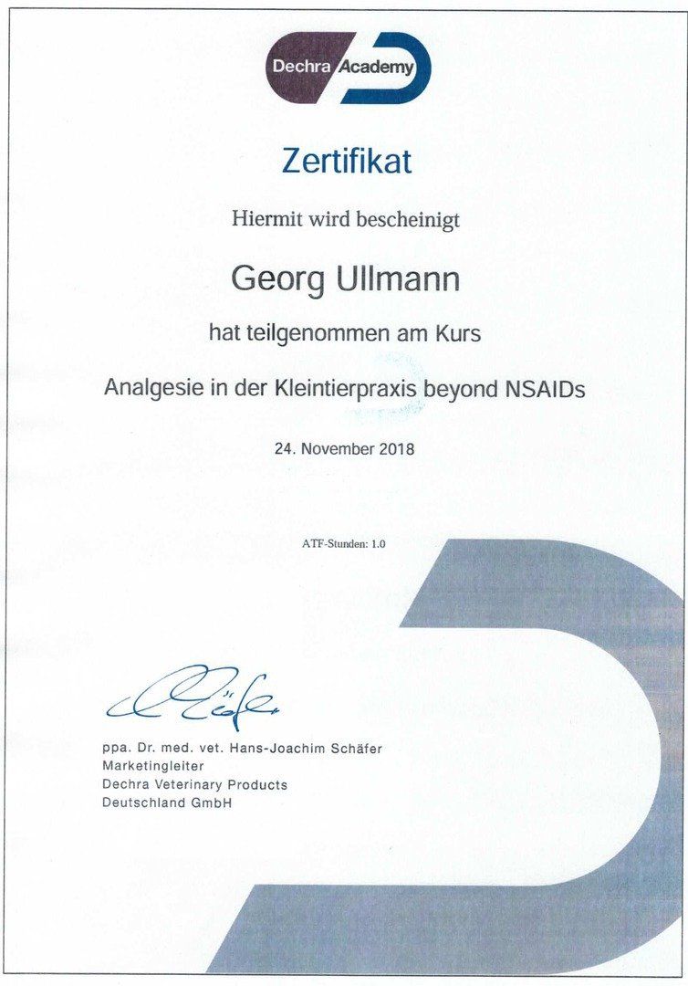 Роберто Кёстлин Проф. мед. вет., дополнительная квалификация в офтальмологии, хирургическая и гинекологическая клиника мелких животных, Университет Людвига Максимилиана, Мюнхен Признание ATF 13 часов